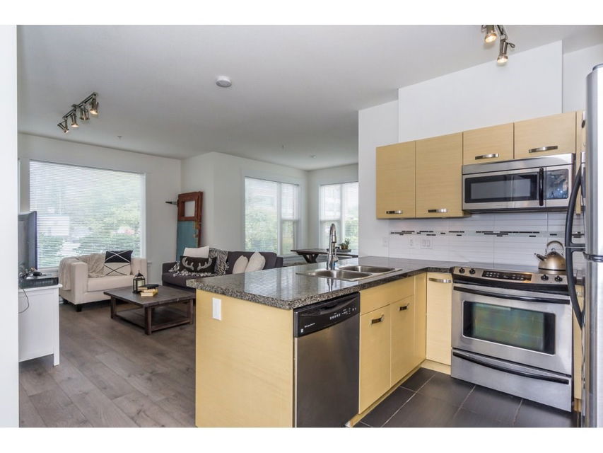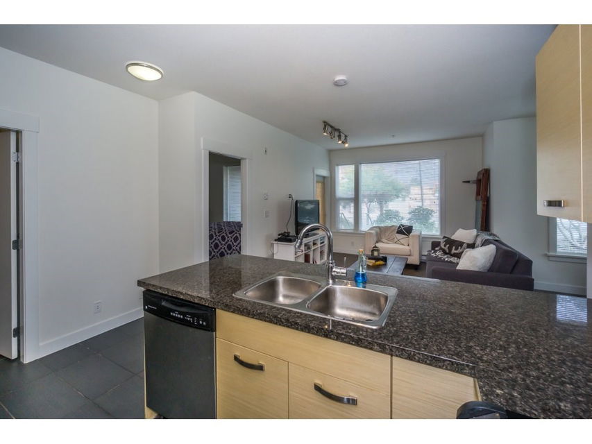 BIG BEAUTIFUL CORNER CONDO!! Living room and dining room laminate floors and bedroom carpets brand new!! New paint throughout!! More than 900 square feet this 2 bedroom 2 bathroom condo built in 2009 has granite counters, nice size laundry room with in suite washer/dryer, 2 parking spots #78 & #79, storage locker, all S/S appliances and a big concrete patio. Location is excellent close to UFV, easy access to Hwy1, shopping and restaurants in walking distance. Rentals allowed!! Dogs are not allowed. Currently has a tenant paying $1400.00 per month.