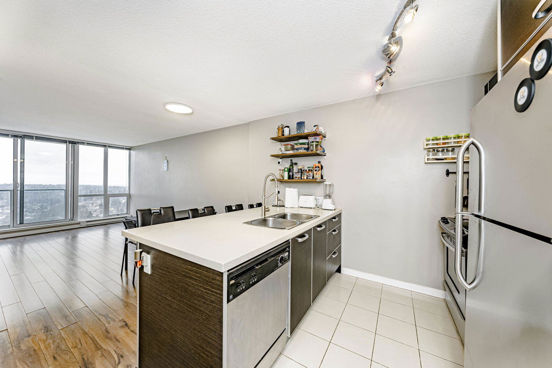 Priced Below BC Assessment Value!! Stunning Views of mountains and city from the 30th floor!! This lovely 2 bedroom and 2 bathroom condo is located in Surrey Central and is close everything you need! Skytrain, transit, shopping and restaurants!! Nice open floor plan with floor to ceiling windows. Enjoy cooking with an open kitchen looking out at the incredible views. Granite counters and stainless steel appliances. Fantastic amenities include a gym, yoga room, meeting room, bowling alley and sauna. 24 hour concierge!! Pets allowed. One underground parking spot. #P2-576