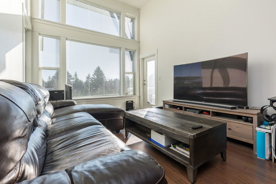 THE CROSSING! Top floor end unit facing South has loads of natural light with a vaulted living room ceiling!! This spacious 2 bedroom 2 bathroom condo boasts of lovely granite counter tops, SS Appliances, in-suite laundry and a nice size balcony. Great location as is walking distance to McCallum Crossing where you will find Starbucks, Browns Social House, McDonalds, Cabela’s, Everything Wine and much more! Easy access to Highway 1! Amenities include a gym and club house. 1 cat allowed. Dogs not allowed.