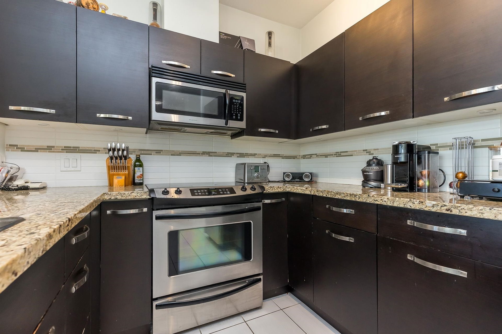 THE CROSSING! Top floor end unit facing South has loads of natural light with a vaulted living room ceiling!! This spacious 2 bedroom 2 bathroom condo boasts of lovely granite counter tops, SS Appliances, in-suite laundry and a nice size balcony. Great location as is walking distance to McCallum Crossing where you will find Starbucks, Browns Social House, McDonalds, Cabela’s, Everything Wine and much more! Easy access to Highway 1! Amenities include a gym and club house. 1 cat allowed. Dogs not allowed.