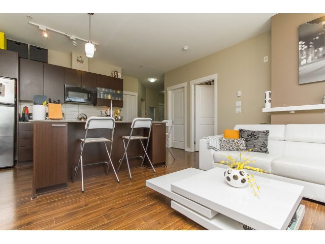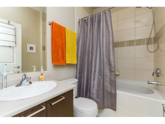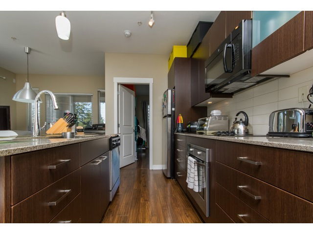 TOP FLOOR CORNER CONDO in AGENDA at Urban Village! Built with Quality in mind by WESTONE PROPERTIES. 2 Bedrooms and 2 Full Bathrooms. 2nd bath is even a Cheater ensuite. OPEN, GREAT ROOM style floorplan with Abundant Windows and Light. STAINLESS APPLIANCES and GRANITE COUNTERTOPS in your Chefs Pleaser Kitchen. QUIET location in Building and Covered balcony perfect to relax and enjoy the view. 1 block from Central City Mall, SFU, Skytrain, recreation centre, parks, schools & library.