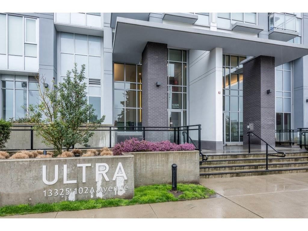 Beautiful 7th floor corner1 bedroom condo in ULTRA with a fabulous South/West view. Located in the Surrey Central area just blocks from Simon Fraser University, sky train, shopping and restaurants. This area is newly developed with the new Surrey City Hall and the Library also walking distance. Just 4 years old this lovely suite has all stainless steel appliances, in-suite laundry, underground parking and storage. Rentals are allowed, pets are not allowed. Showing Wednesday May 17 fro 4pm to 6pm by appointment and offers should be emailed by 7pm Thursday.
